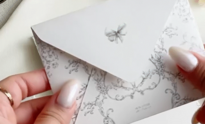 A sweet, delicate, elegant envelope and card suite for timeless compliments.